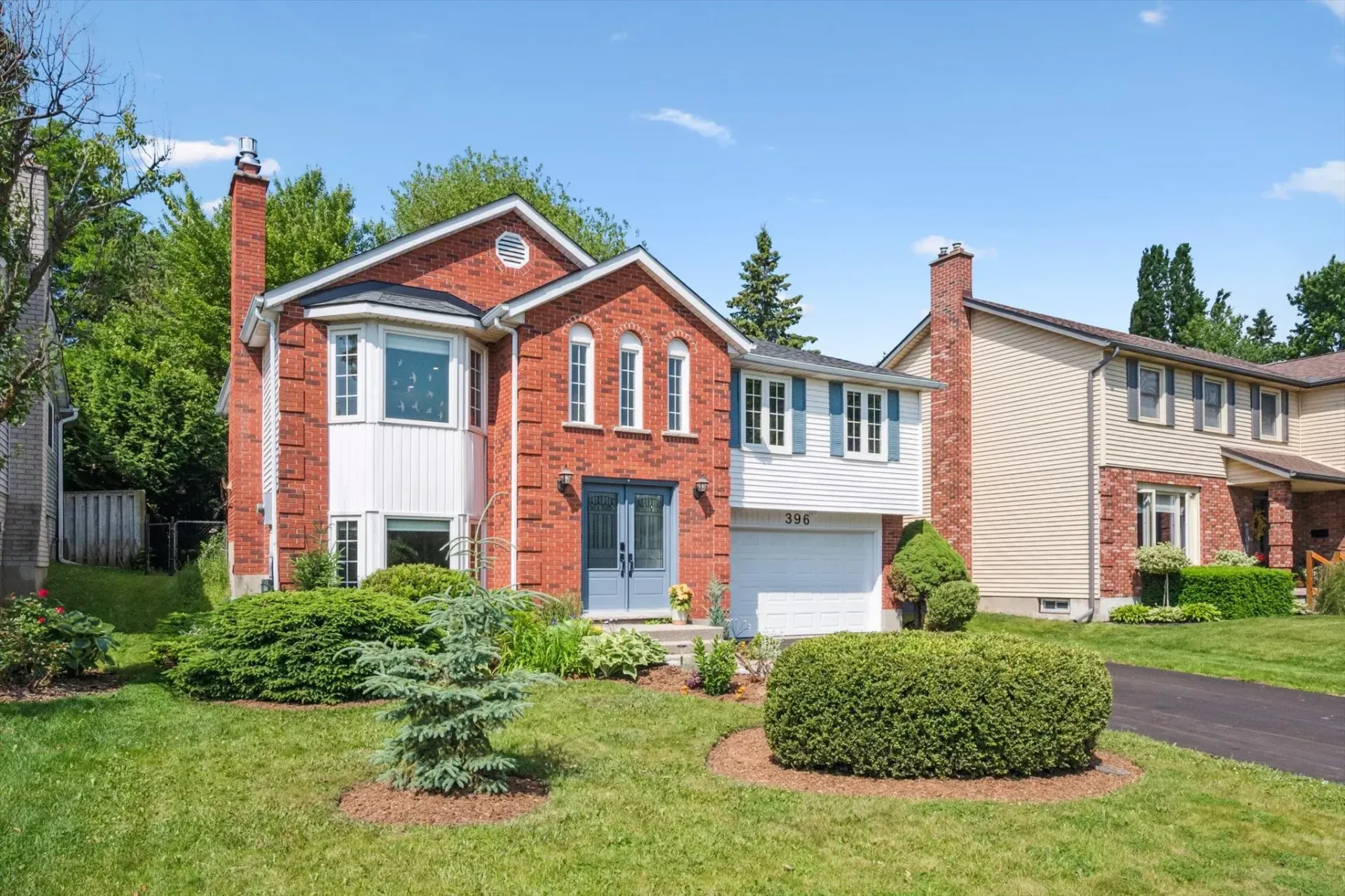 Tucked away on a quiet street in Guelph’s established south end, 396 Ironwood Road is a thoughtfully updated raised bungalow that effortlessly combines comfort and style. The open-concept main floor welcomes you with gleaming refinished hardwood, anchored by a beautifully renovated kitchen featuring a granite island, tile backsplash, and abundant cabinetry. A wood-burning fireplace creates a cozy atmosphere in the living room, with sliding doors leading to a private rear deck - perfect for summer dining or relaxing in the shade. The primary bedroom comfortably fits a king-sized bed and boasts a modern ensuite, while two additional well-sized bedrooms share a sleek main bath. Downstairs, the finished lower level offers a gas fireplace in the family room, a fourth bedroom, and a tastefully updated bathroom and laundry area with new appliances and walkout access to the backyard. This move-in ready home also includes a double car garage, newer furnace and A/C, and a newly resurfaced driveway, blending quality finishes with everyday convenience in a location ideal for growing families.